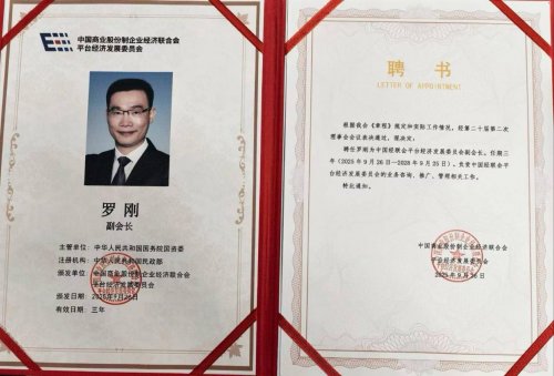 罗刚被聘为中国商业股份制企业经济联合会平台经济发展委员会副会长