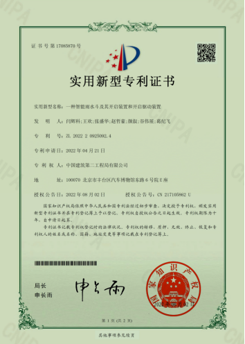 近日,中建二局河北分公司团队研发的《一种智能雨水斗及其开启装置和开启驱动装置》、《一种室内装修用的抹灰装置》两项科技成果获国家实用新型专利授权。